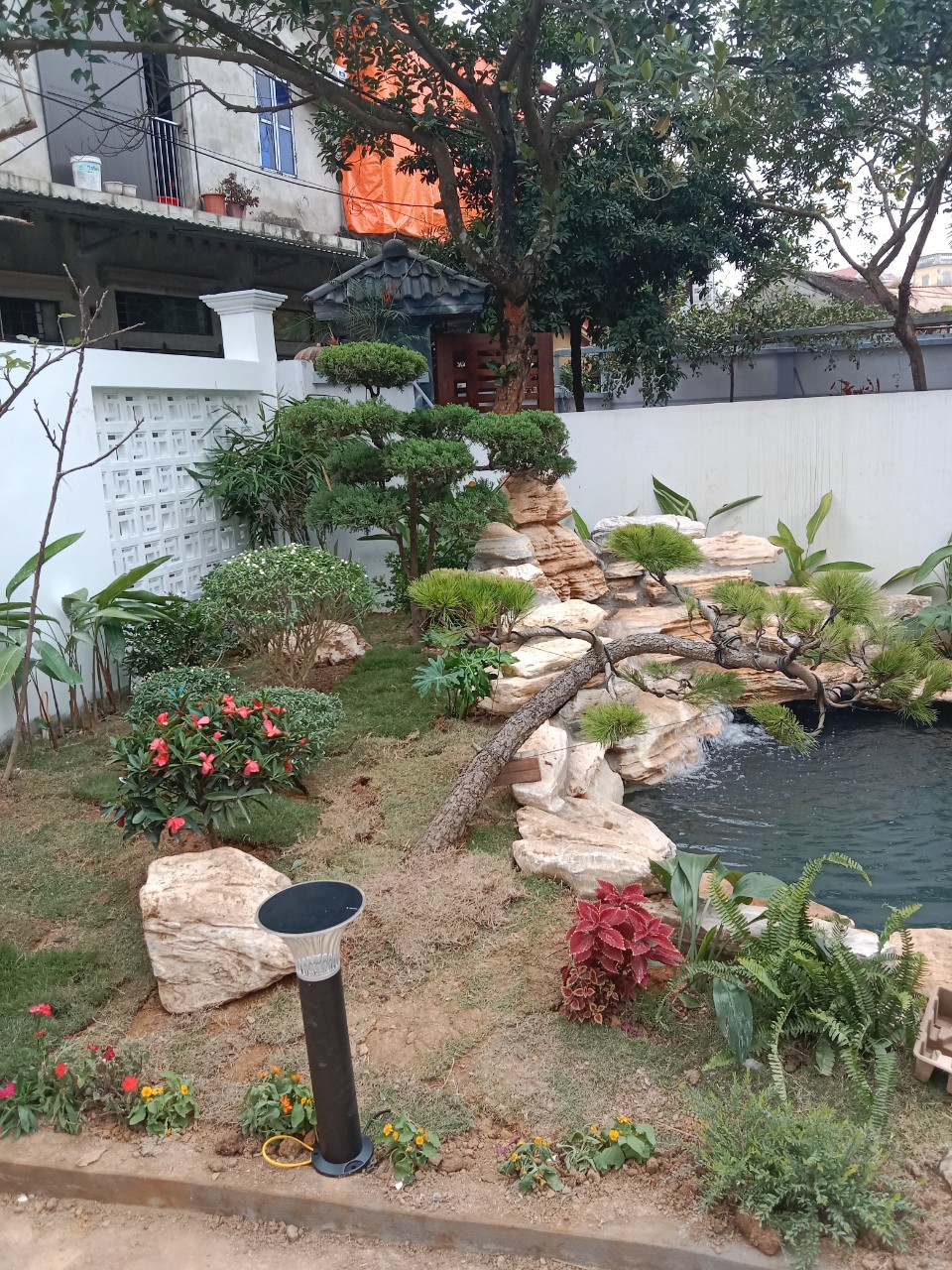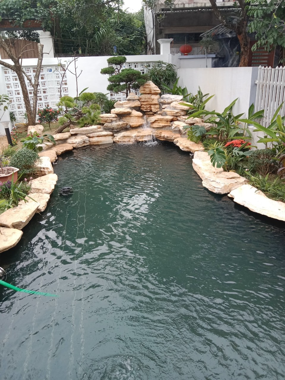Hồ Koi kết hợp tiểu cảnh thác nước là ý tưởng chính của sân vườn này. Thông qua các bản vẽ 3D nhận được sự hài lòng từ phía chủ nhà, hiện nay chúng tôi đã hoàn thiện dự án sau thời gian thi công.