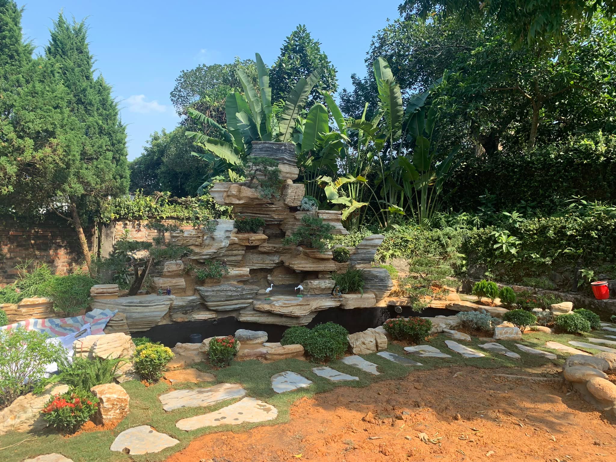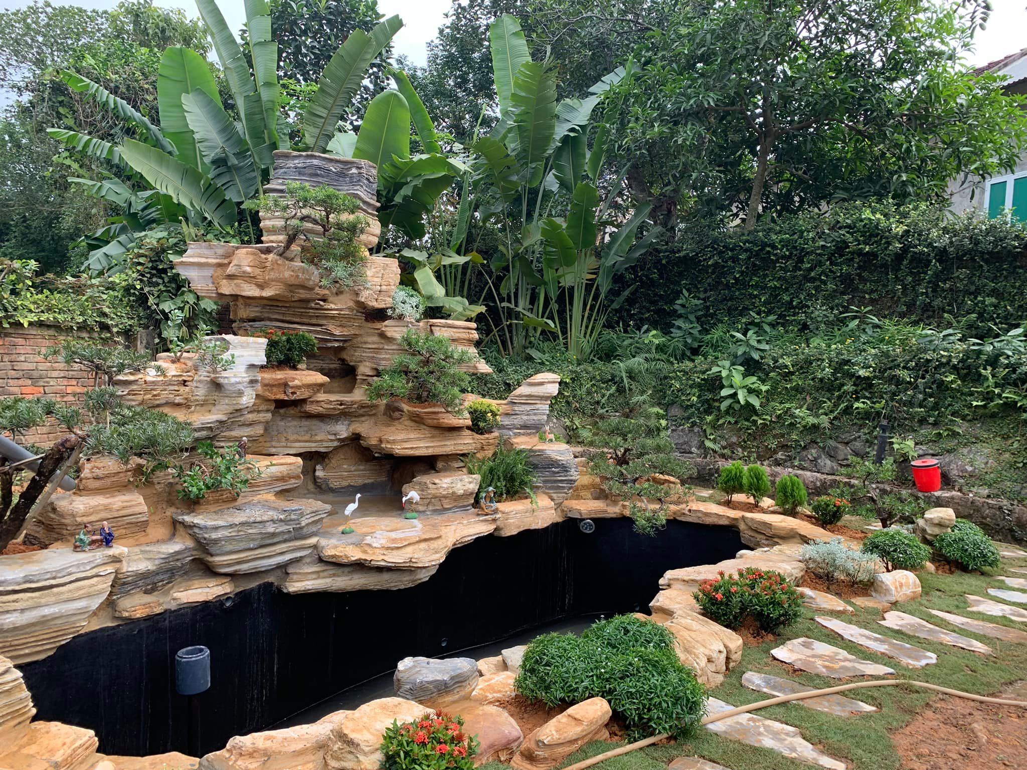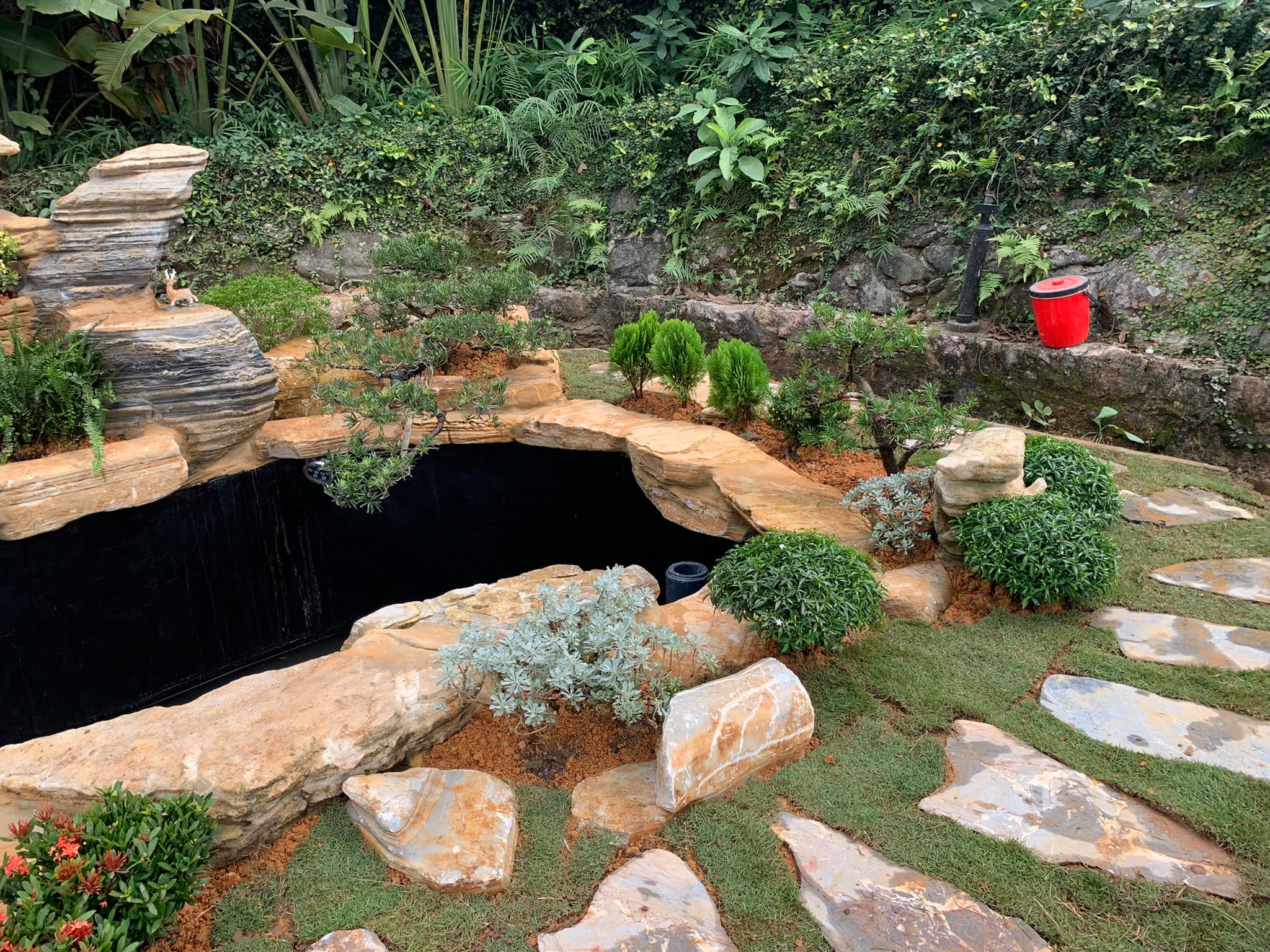 Một hồ cá có kích thước phù hợp không chỉ lấp đầy khoảng trống trong sân vườn mà còn điểm nhấn thu hút ánh nhìn ấn tượng. Thay vì chỉ bố trí các loại cây xanh, thảm cỏ, đường dạo thông thường thì việc có một hồ cá koi đẹp sẽ góp phần không nhỏ tạo nên một cảnh quan hài hòa, làm tăng thêm phần sinh động cho tổng thể không gian.