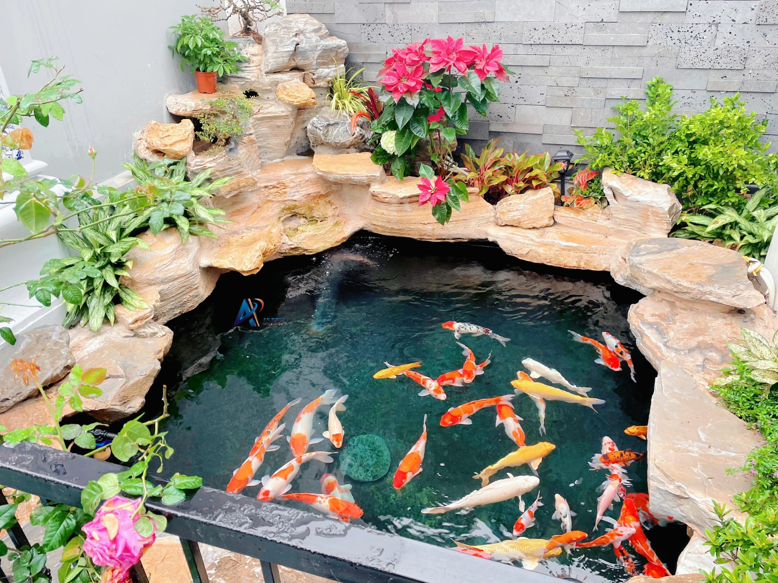 Ngôi nhà của anh Sơn là một căn biệt thự nhà phố với kiến trúc hiện đại, sang trọng. Tuy nhiên, diện tích phần sân nhà không lớn. Do đó, koi đã trao đổi và thống nhất với anh về ý tưởng thi công hồ Koi cùng với thác nước tường. Hai tiểu cảnh này không quá phức tạp vừa giúp nâng cấp không gian sống, vừa giúp giữ cho ngôi nhà sự thoáng đãng vốn có.
