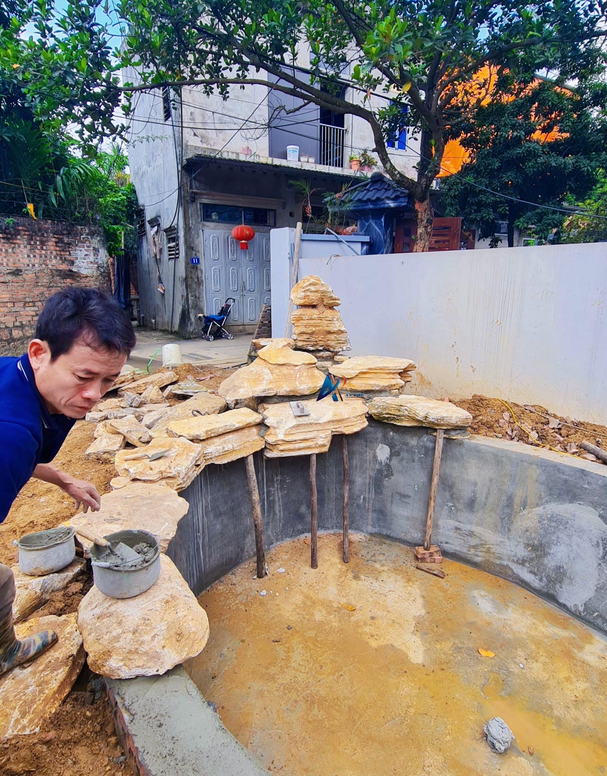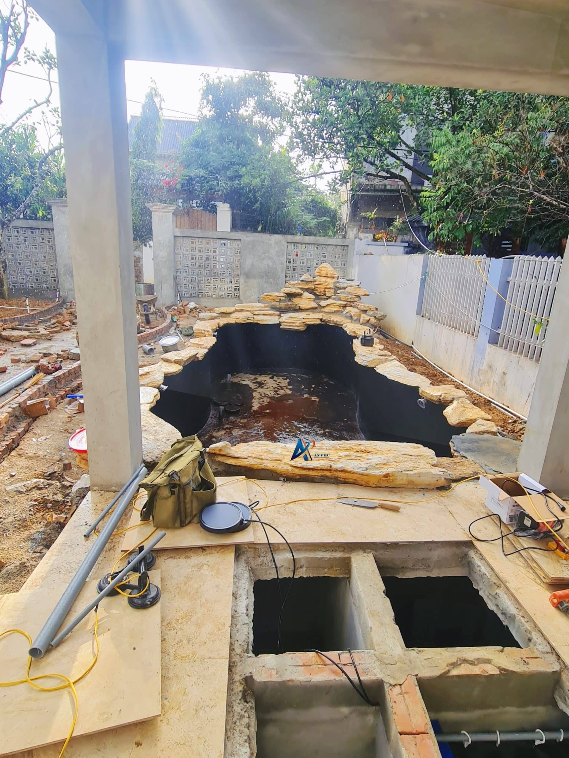 Ngôi nhà của anh Sơn là một căn biệt thự nhà phố với kiến trúc hiện đại, sang trọng. Tuy nhiên, diện tích phần sân nhà không lớn. Do đó, koi đã trao đổi và thống nhất với anh về ý tưởng thi công hồ Koi cùng với thác nước tường. Hai tiểu cảnh này không quá phức tạp vừa giúp nâng cấp không gian sống, vừa giúp giữ cho ngôi nhà sự thoáng đãng vốn có.