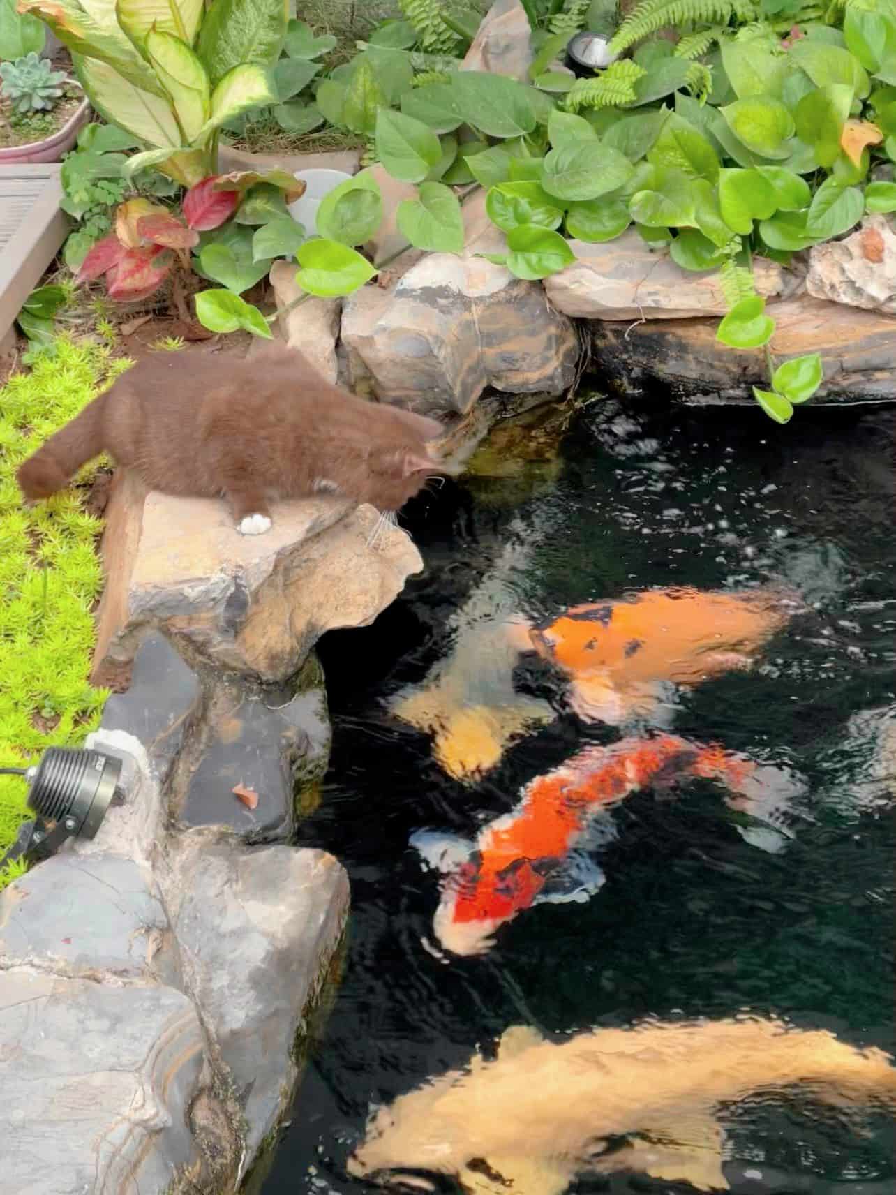 Toàn bộ dự án được thực hiện vỏn vẹn ở một bên hông nhà, ngay cổng chính nhìn vào. Ở ngay đầu là hệ thống bụi hoa đẹp mắt cùng với những lá sen vươn mình hứng sương sớm. Hồ Koi được sơn đen mặt đáy, xây dựng theo hình chữ nhật. Ở một phía cạnh hồ được sắp xếp những phiến đá bước dạo nổi lên trên mặt nước, dọc chiều dài hồ.